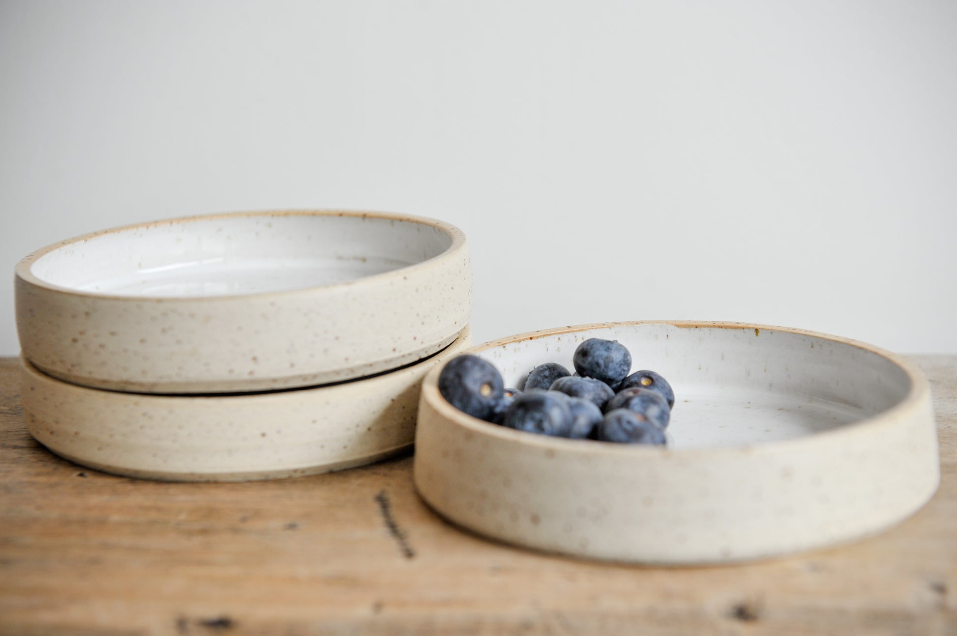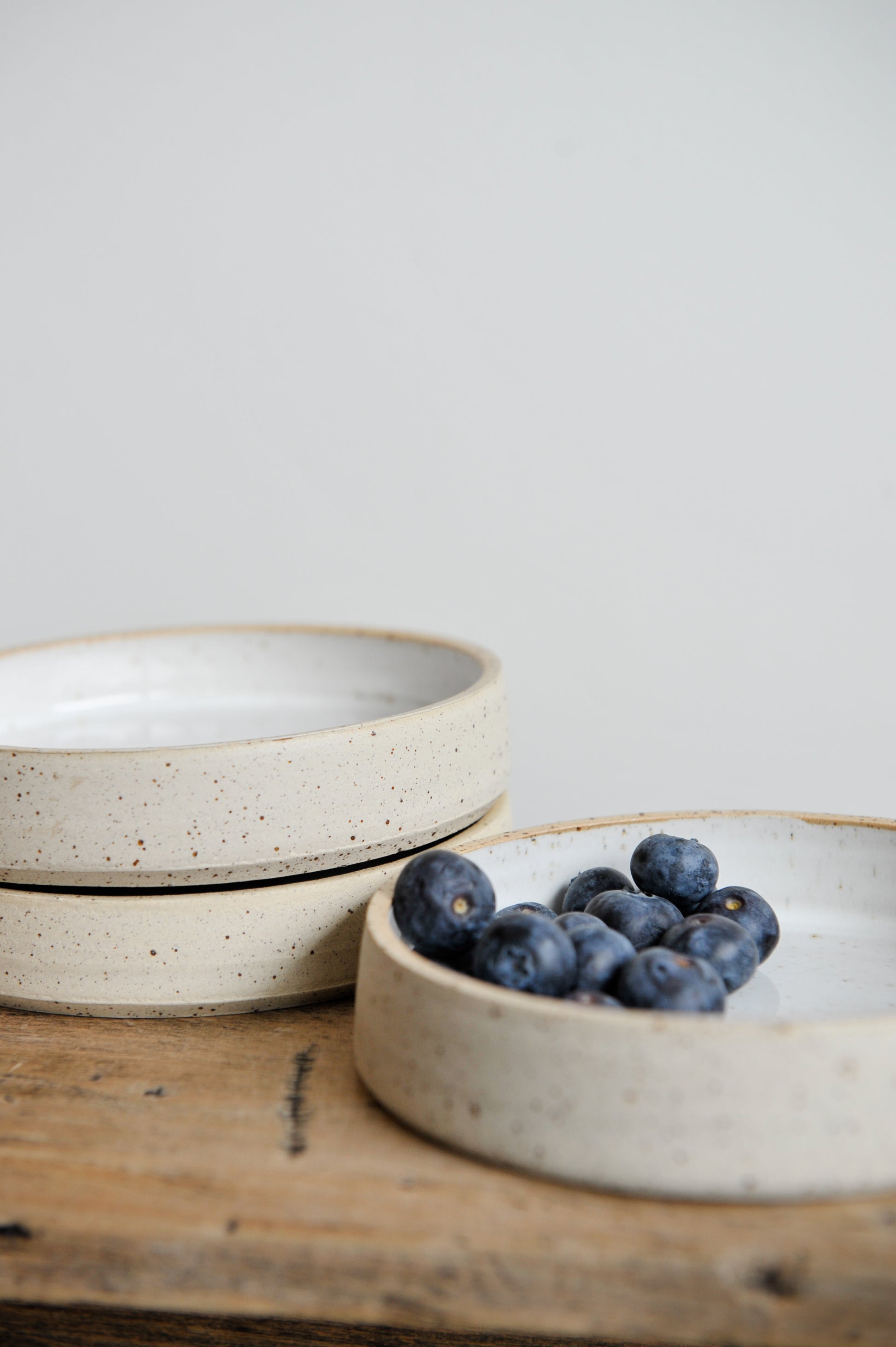Schaaltje in spikkel liklei met semi-dekken wit glazuur aan de binnenkant.